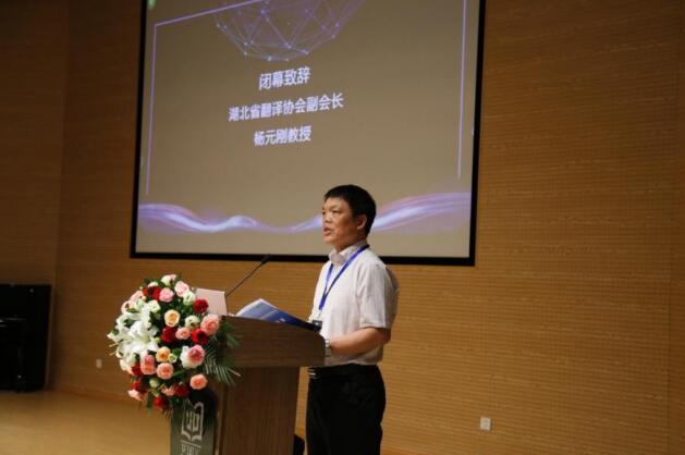 湖北省翻译协会副会长、湖北大学外国语学院杨元刚教授致闭幕辞。他肯定了电影在文化传播中承担的重要使命,指出影视翻译在中国文化走出去的进程中正在发挥重要作用。他总结道,本次论坛顺应新形势,抓住新机遇,拓展了翻译的新理念,具有与时俱进、求真务实和会风实在的特点;同时,2019全国影视翻译高层论坛召开的时间节点,回应了近期广电部提出的影视剧译制“走出去”的国家策略。