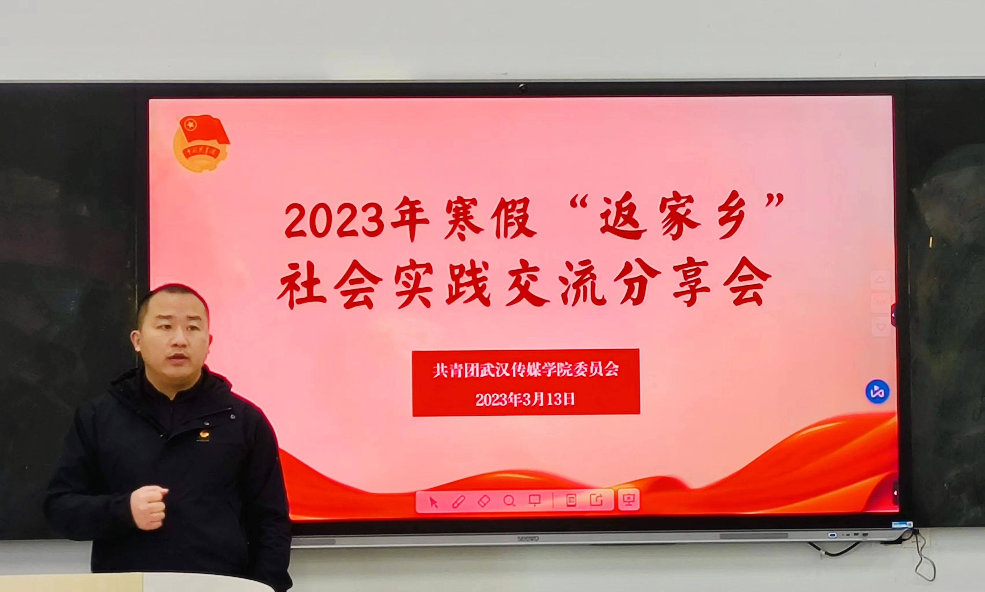 (共青团武汉传媒学院委员会网讯 通讯员 胡润佳 陆迪)3月13日,我校2023年寒假“返家乡”社会实践交流分享会在7205智慧教室召开。校团委书记瞿宗巍、各学院团委书记、团委副书记及各学院优秀实践代表参加会议,会议由校团委副书记蒋璐璐主持。