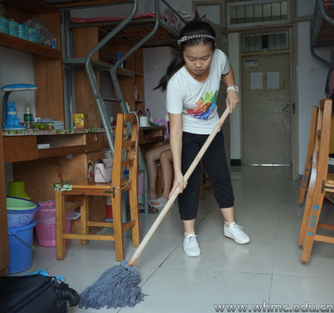 父母把管心雨送到寝室后离开后,管心雨便整理起自己的生活用品。收拾衣物,打扫卫生。管心雨说:“在家里经常帮妈妈做家务,所以料理生活已经得心应手,希望能尽快适应大学的学习和生活。”