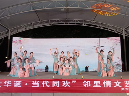 (通讯员 武思雨)9月27日,由东湖新技术开发区关东街道办事处主办、当代社区居民委员会承办、我校文化管理学院 “常青树”毕设团队全程协办的“盛世华诞・当代同欢”邻里情文艺晚会暨便民公益集市活动,在当代社区运动公园圆满落幕。本次活动是我校文化管理学院推动产教融合、强化实践教学的重要成果,充分展现了文化产业管理专业(演艺策划方向)学生在大型社区文化项目中的策划执行与综合协调能力。