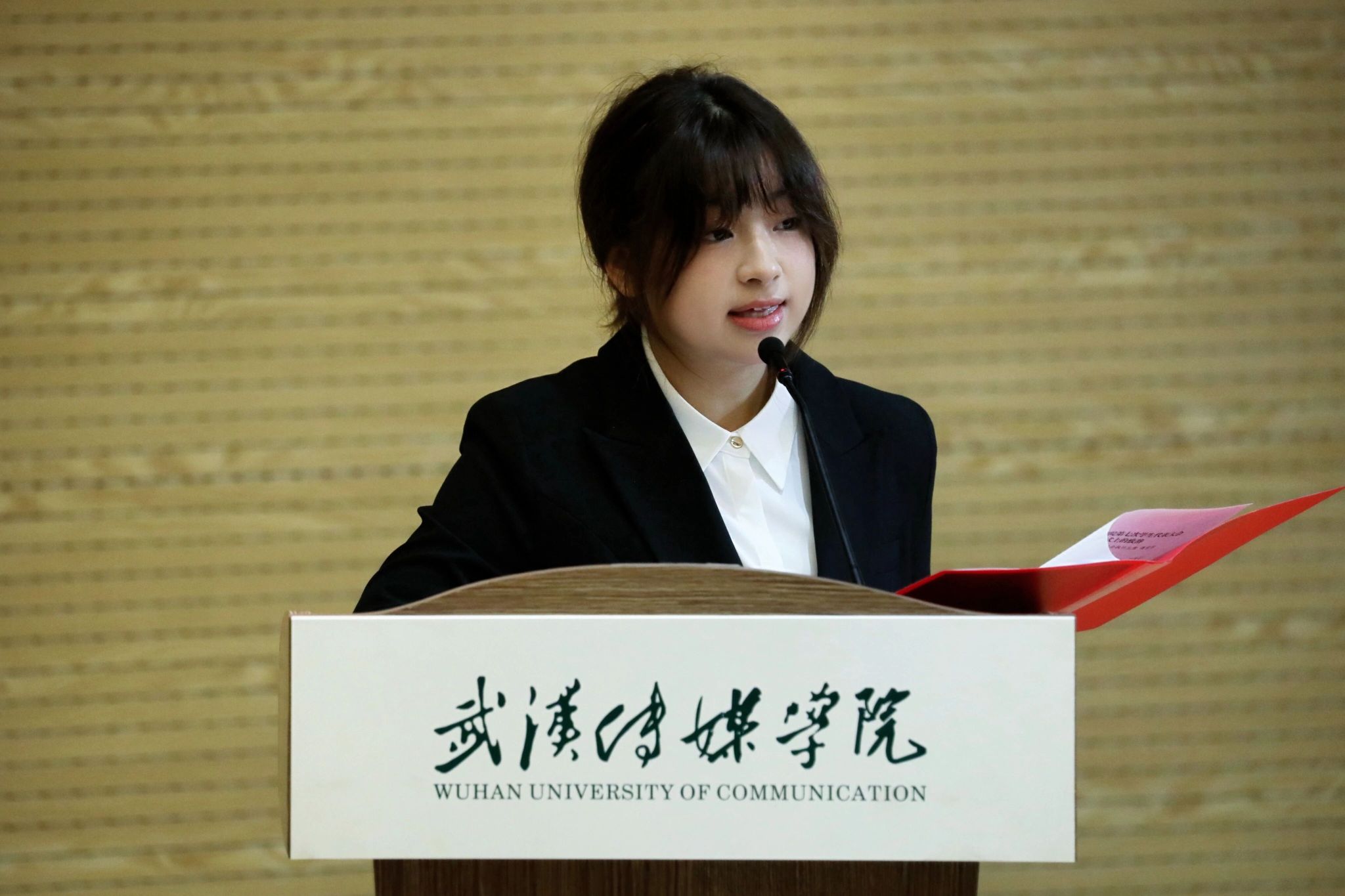 校团委副书记蒋璐璐致闭幕词。她表示,本次学代会是一场凝聚青春智慧、彰显青春担当的盛会。会议期间,代表们围绕学校发展、学生成长等核心议题积极建言献策,开展热烈务实的讨论,充分展现了武传学子的责任与担当。同时,她提出三点希望与全体同学共勉:一是坚定理想信念,勇担时代使命;二是聚焦问题导向,提升服务效能;三是加强自身建设,锤炼过硬本领。