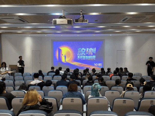 在张程、刘英康两位老师的带领和讲解下,嘉宾先后走进博雅园、后广场及一号楼中庭,观赏《渡鸦》《一个饿死的男人》《下不为隶》三部实景小型原创剧目。演员与嘉宾现场互动自然,打破舞台与观众的距离感,增强了体验的参与感。三部作品风格迥异,围绕人性、情感与职场现实细腻演绎,感染力强、台词真挚,赢得阵阵好评。随后,嘉宾前往3115放映厅,参与“又见放映”优秀毕业作品展映,多部毕业生优秀影像作品依次呈现。