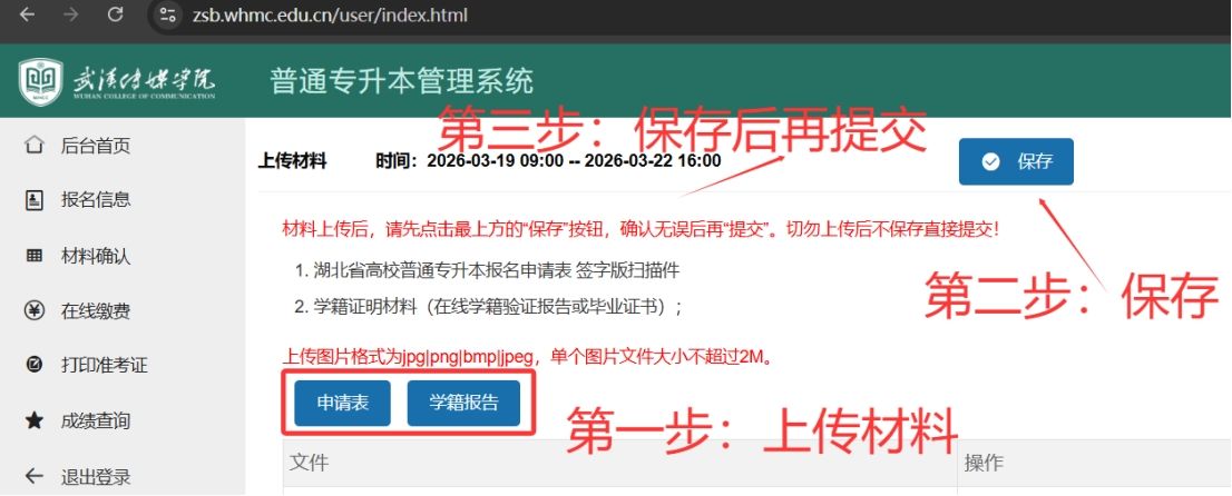 武汉传媒学院专升本管理系统网址:https://zsb.whmc.edu.cn