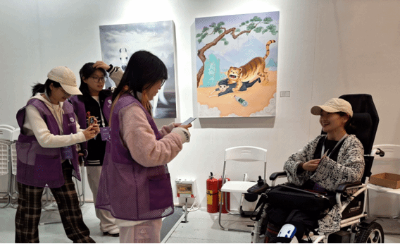 今年,文化管理学院创新推行 “课程进展会” 教学模式,将《文化经纪理论与实务》《文化市场调查实训》两门专业课的教学现场,直接延伸至大艺博实景展场。来自 2023 级、2024 级文化产业管理专业的 82 名学生志愿者,以艺术品文化经纪人的身份深度参与展会核心业务,涵盖观众接待、艺术品专业讲解、现场销售运营等环节。