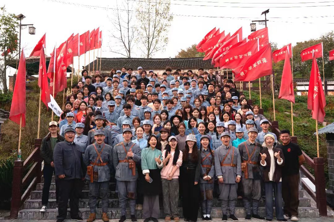 2025 年11月8日,由武汉传媒学院倾力创排的沉浸式红色情景剧《1946・中原突围》,在由省文化和旅游厅、孝感市人民政府主办的2025年湖北红色旅游季暨第三届“大别山上红旗飘”主题传播活动中成功首演。作为承载中原突围革命历史的重要红色热土,湖北省孝感市大悟县宣化店镇因这场兼具思想性与艺术性的实景演出焕发生机,演出引发社会各界热烈反响,成为学校传承红色基因、服务地方文化建设的又一重要实践成果。